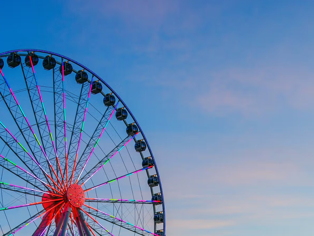 속초아이는 동해와 속초 시내 중심가, 웅장한 설악산을 360도 파노라마로 조망할 수 있어요. 초현대식 6인승 관람차 캐빈은 높이가 65m에 이르고 한 바퀴 회전하는 데 걸리는 시간은 약 15분 정도예요.