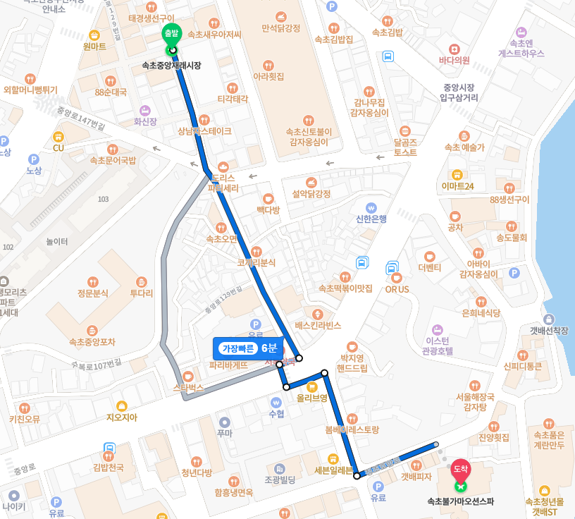 배도 채웠겠다 속초에 왔으니 해수 사우나를 즐겨야 겠죠😀 시장에서 400m 떨어진 곳에 속초 오션 스파에 도착했습니다.