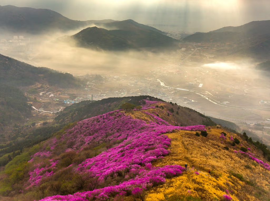진달래 피는 4월에 여수를 여행한다면 꼭 가봐야 할 곳이에요. 여수시 삼일동과 상암동에 걸쳐 위치한 영취산은 해발 510m의 산으로 가족 산행도 가능해요. 전국 3대 진달래 군락지의 한 곳으로 진달래를 전국에서 제일 먼저 볼 수 있는 산이에요. 4월 초에 영취산을 오르면 산 중턱에서 정상까지 온 산을 붉게 물들인 절경을 볼 수 있어요. 정상에서는 다도해와 광양만, 여천공단을 한눈에 내려다볼 수 있죠. 매년 4월에는 진달래 축제가 열리니 때맞춰 여행해 보는 것도 좋아요.