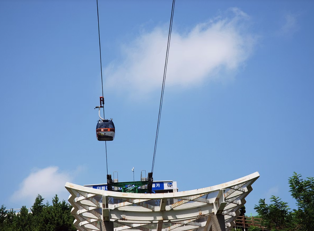 통영케이블카는 시내와 산을 오가는 1975m 길이의 관광 어트랙션이에요. 우리나라에서 유일한 2선 자동 순환식 곤돌라로 국내 일반 관광객용 케이블카 중에서 가장 길죠. 한국의 나폴리로 불리는 한려수도를 배경으로 8인승 곤돌라 47대가 빽빽하게 운행하는 모습은 통영을 대표하는 이미지로 각인되어 있어요.