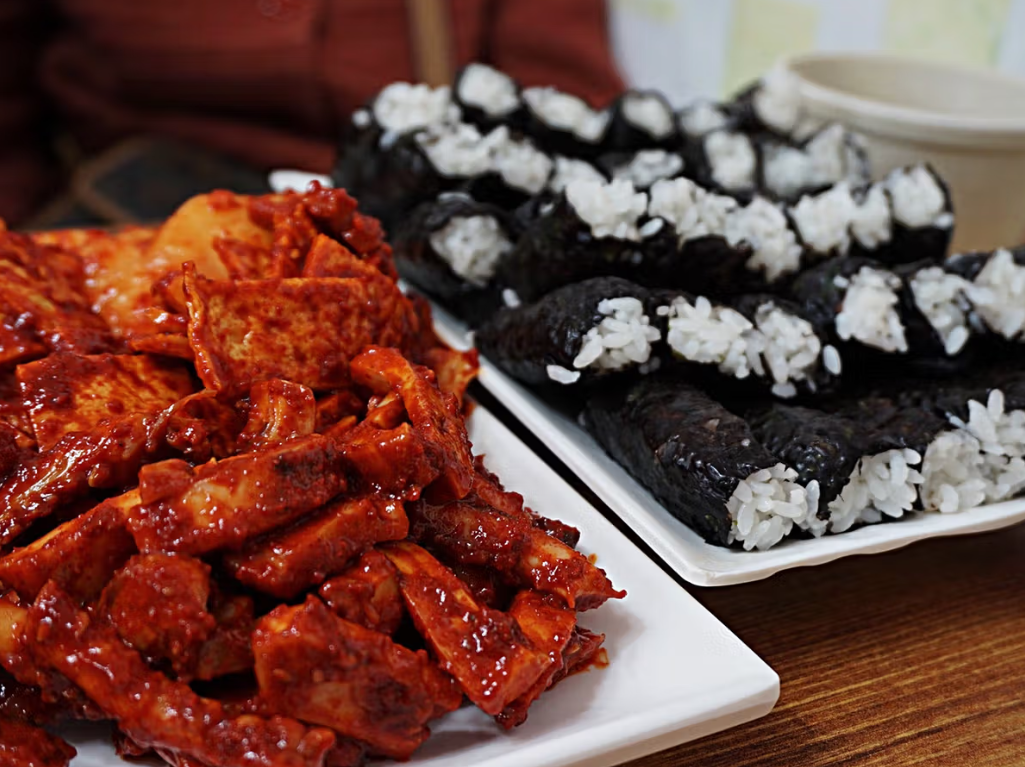 충무김밥은 맨밥에 김을 말아 섞박지 등과 곁들여 먹는 음식이에요. 통영시의 옛 지명인 충무시에서 유래한 이 김밥은 논란의 여지없이 통영을 대표하는 음식이에요. 손가락 굵기의 속 없는 김밥과 섞박지를 기본으로 가게에 따라 무김치, 오징어, 어묵볶음을 함께 내놓는데 김밥의 담백함과 반찬이자 메인 음식인 섞박지의 새콤함 때문에 멈추지 않고 계속 먹게 돼요.